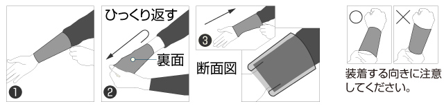 収穫作業など、手を上げる動作が多い際は折り返すと防水性を高められます。