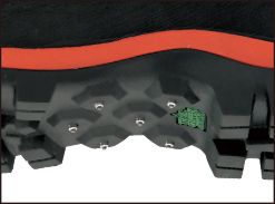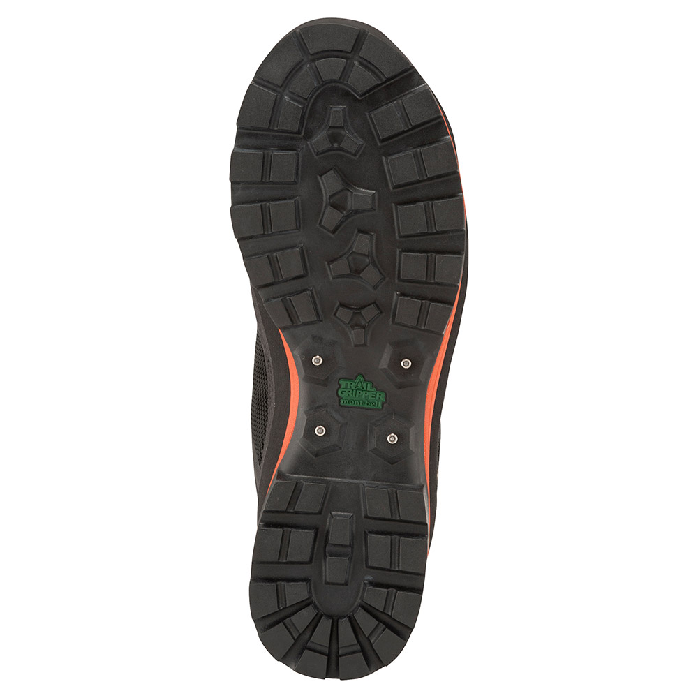 平らな地面に干渉しない土踏まず部分に、タングステンカーバイド製スパイクを装備。丸太などの上でも滑りにくくなっています。