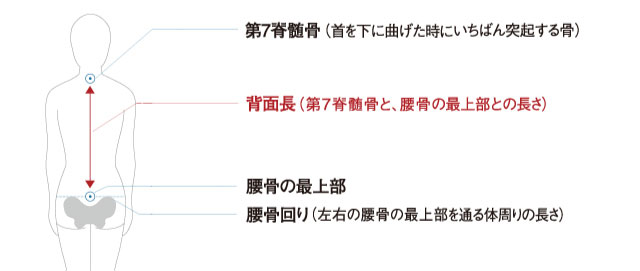 背面長とは第7頸椎から腰骨最上部までの長さのことです。