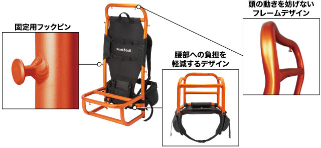 登山用バックパックの背面システムを使用し、快適な背負い心地を実現した林業用の背負子です。フレームには軽くて丈夫なアルミニウム合金を使用し、溶接により強固に接合しています。腰部は、局所的に掛かる荷重を緩和する構造。重い荷物も安定した背負い心地です。オプションパーツを装着することで、さまざまな場面に対応する拡張性を備えるほか、不定形の荷物を取りつけるのに便利なフックピンがついています。