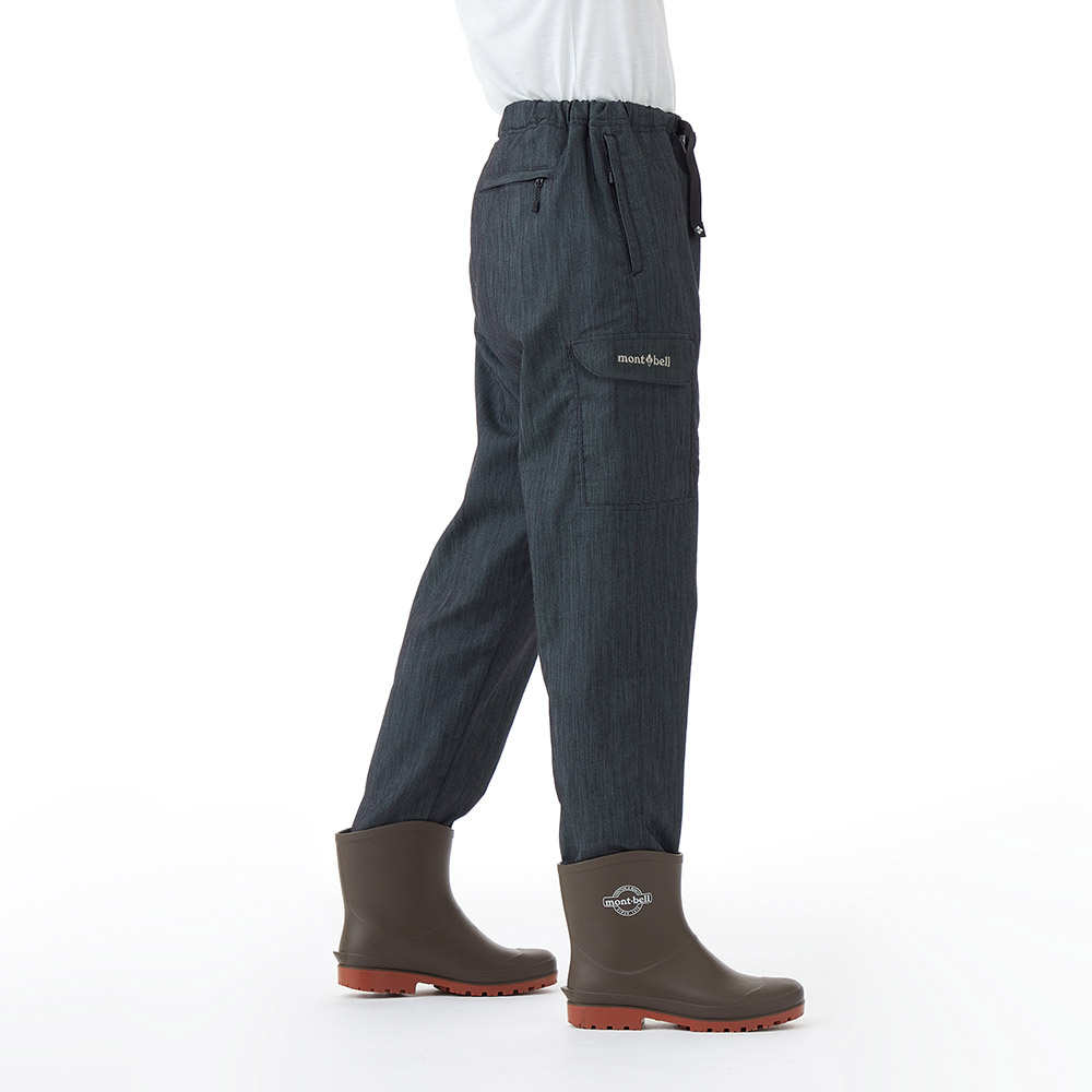 伝統的な作業着のもんぺを素材やシルエットにこだわり、動きやすく仕上げたパンツです。適度なストレッチ性を持つ独自素材を使用し、ゆったりとした胴回りと裾を絞ったシルエットにより、足上げやしゃがむ動作がスムーズに行えます。春や秋の農作業やガーデニングなどに適しています。