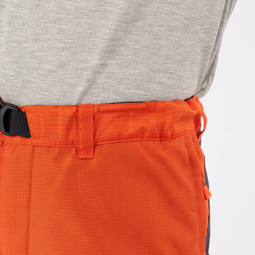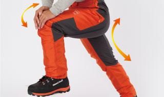 チェーンソーの刃が当たる可能性がある両脚前部に防護材を内蔵した林業用パンツです。前面には軽量・高強度素材バリスティック®ウルトラを使用。背面にはストレッチ性を備えた素材を使用し、膝に立体裁断を施すことで優れた運動性を実現しています。※商品の特性上、裾上げはできません。