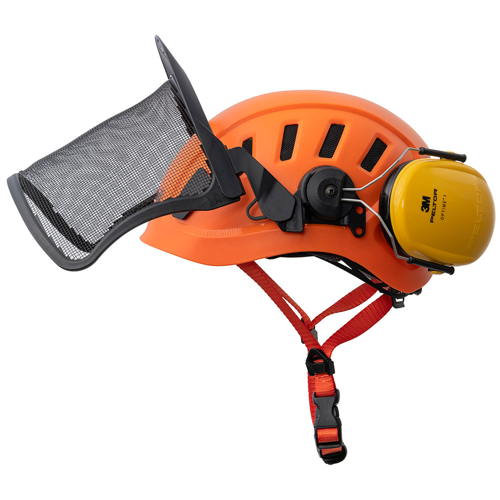 厚生労働省の保護帽規格をクリアした強度を備え、軽量性と堅牢性を両立した林業用ヘルメットです。別売のイヤーマフやフェイスシールドなどのオプションを装着できます。日本人の頭部形状にフィットさせた独自のアジアンフィットデザインです。両サイドに通気孔を設け効率よく蒸れを排出します。