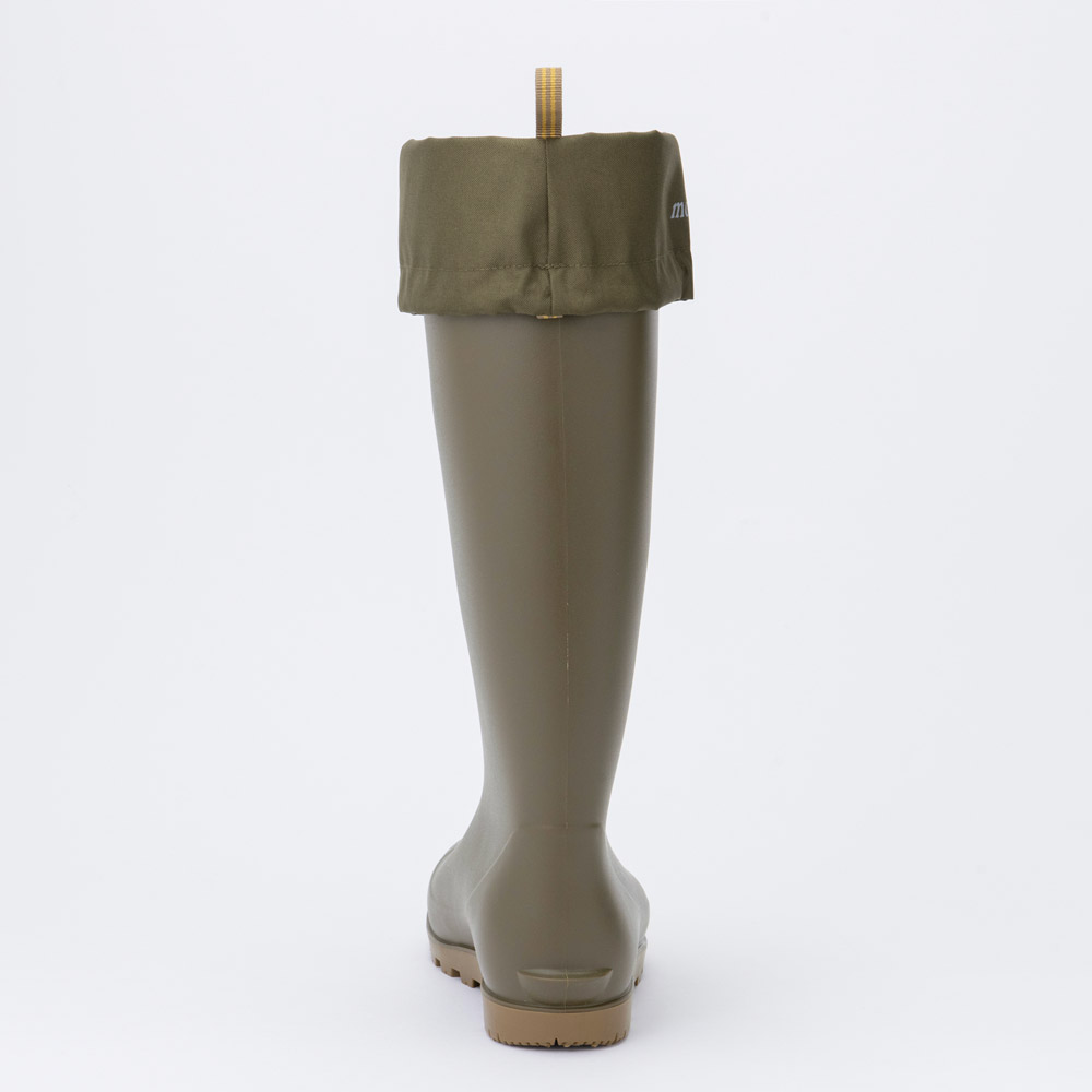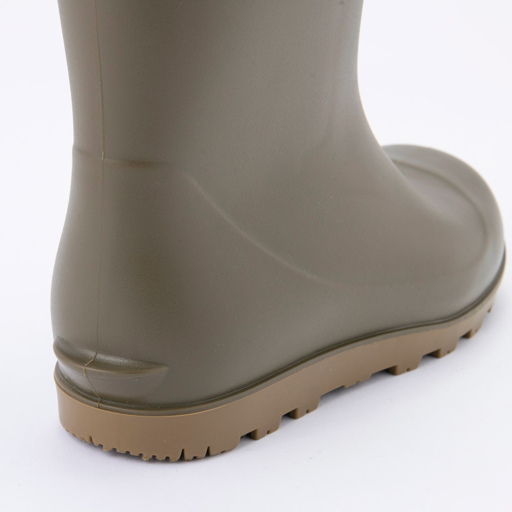キャンプやガーデニングなどのさまざまなシーンで幅広く活躍するブーツ。耐油性(※)を備えているため、水産業や農業での使用にも適しています。軽く柔らかな履き心地が特長で、立ったりしゃがんだりが多い作業にもしなやかに追従。日本人の足にフィットするラスト(足型)を使用し、かかとが浮きにくくなっています。独自設計のブロックパターンを使用したアウトソール(靴底)は、泥はけがよく平滑な地面でも滑りにくい仕様。快適な歩行をサポートします。カフ付きで履き口をドローコードで絞り、足にフィットさせることができます。
