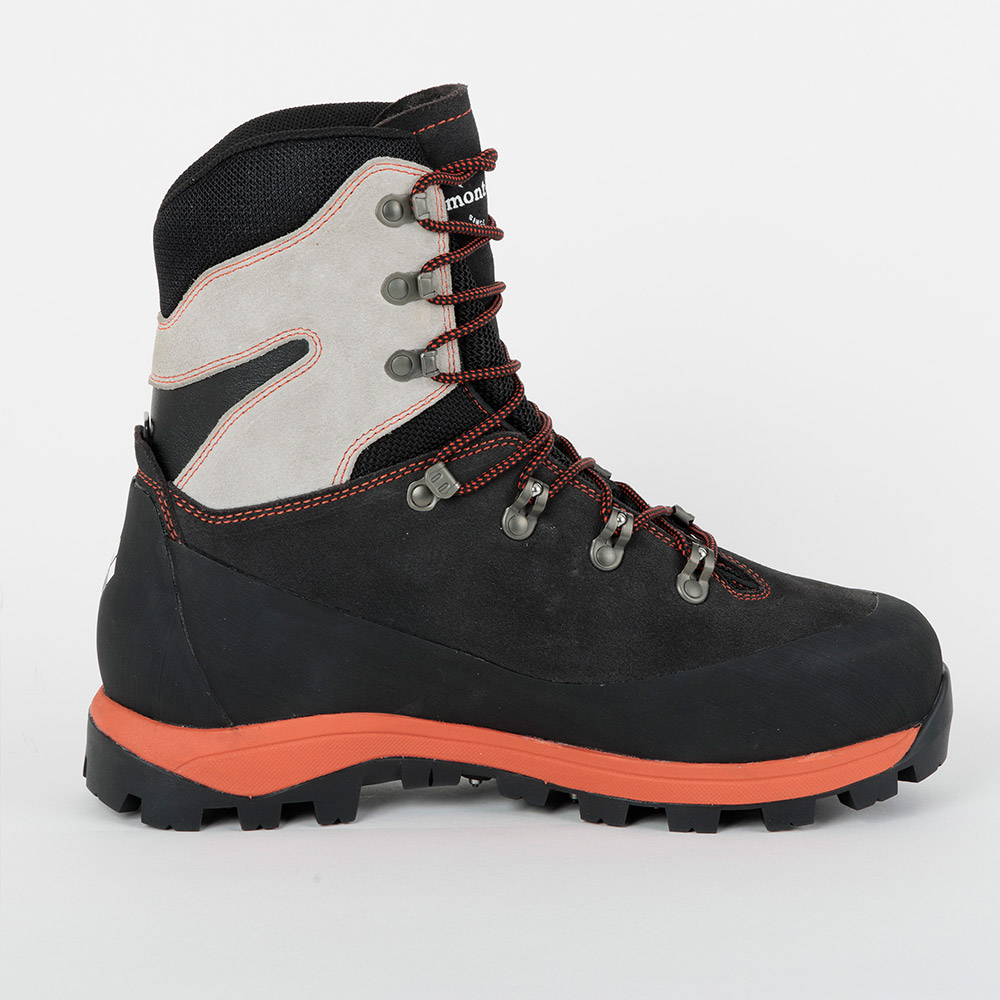 登山靴の優れた踏破性と快適性を備えたチェーンソー用防護ブーツです。全面にスパイクを装備し、急斜面での作業にも対応します。日本人の足に適したラストを使用し、高いフィット感を実現。アッパーには厚手のスエードレザーとゴアテックスファブリクスを組み合わせ、防護材を挟み込むことで、強固な防護性とともに耐久性・防水透湿性を備えます。別売の「ロガーゲーター」と組み合わせることで、さまざまな林業の現場に対応します。