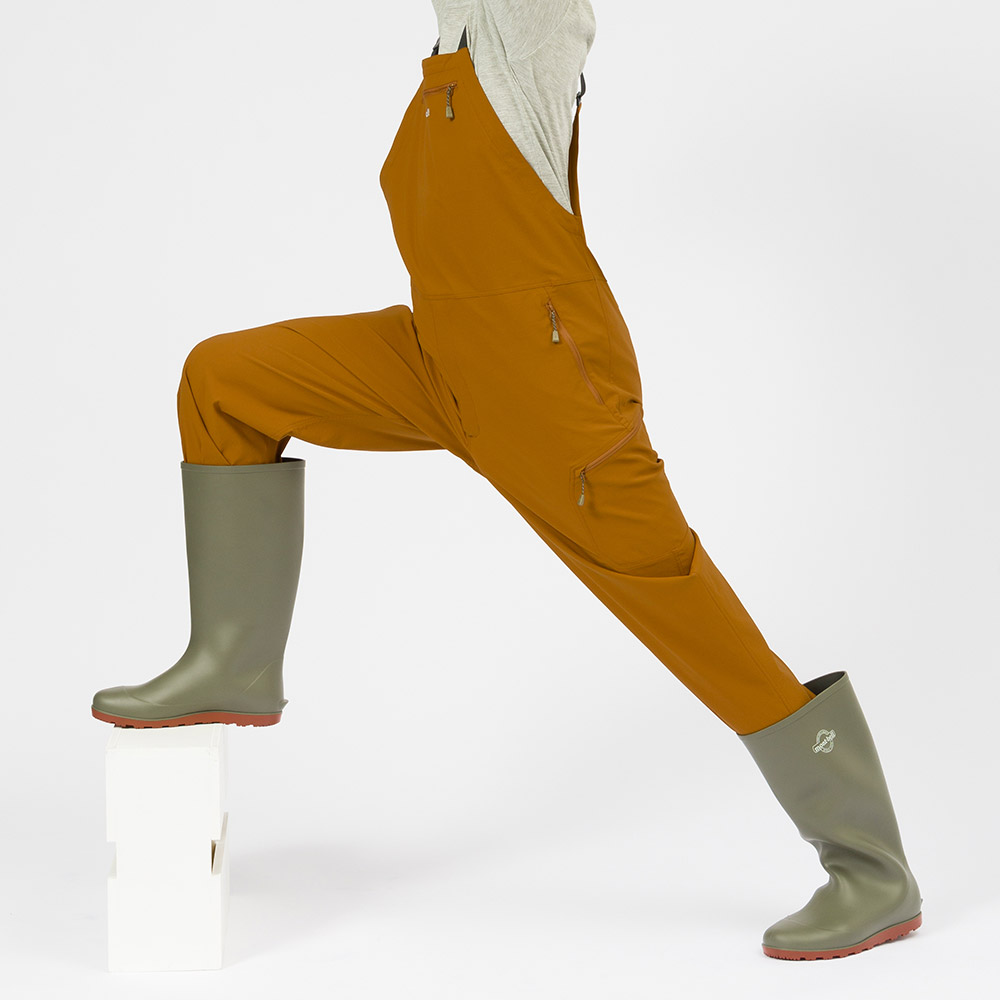 すっきりとしたシルエットで農機具などへの巻き込みやひっかかりが起きづらい作業用ビブです。ストレッチ素材を使用し伸縮性が高く、速乾性にも優れています。一カ所のバックルでサスペンダーの長さを調節可能。農作業やガーデニングなどに適しています。ご自宅で手軽に洗濯できます。