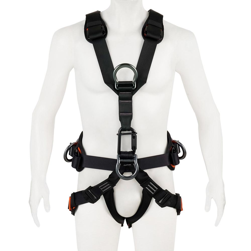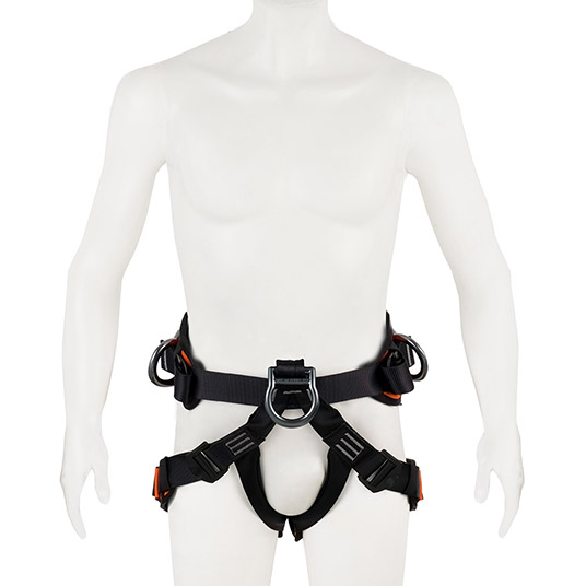 樹木の剪定などの高所作業で使用できるハーネス。D環を胴の左右に設けており、ワークポジショニングシステムで使用できます。別売りのロガーチェストハーネスと組み合わせることで6.75m以上の高所で使用する場合に必要な規格である墜落制止用器具のフルハーネス型として使用できます。それ以下の高度では、墜落制止用器具の胴ベルト型として使用できます。ギアラックを4つ配しており、スリングやカラビナを適宜装着できます。
