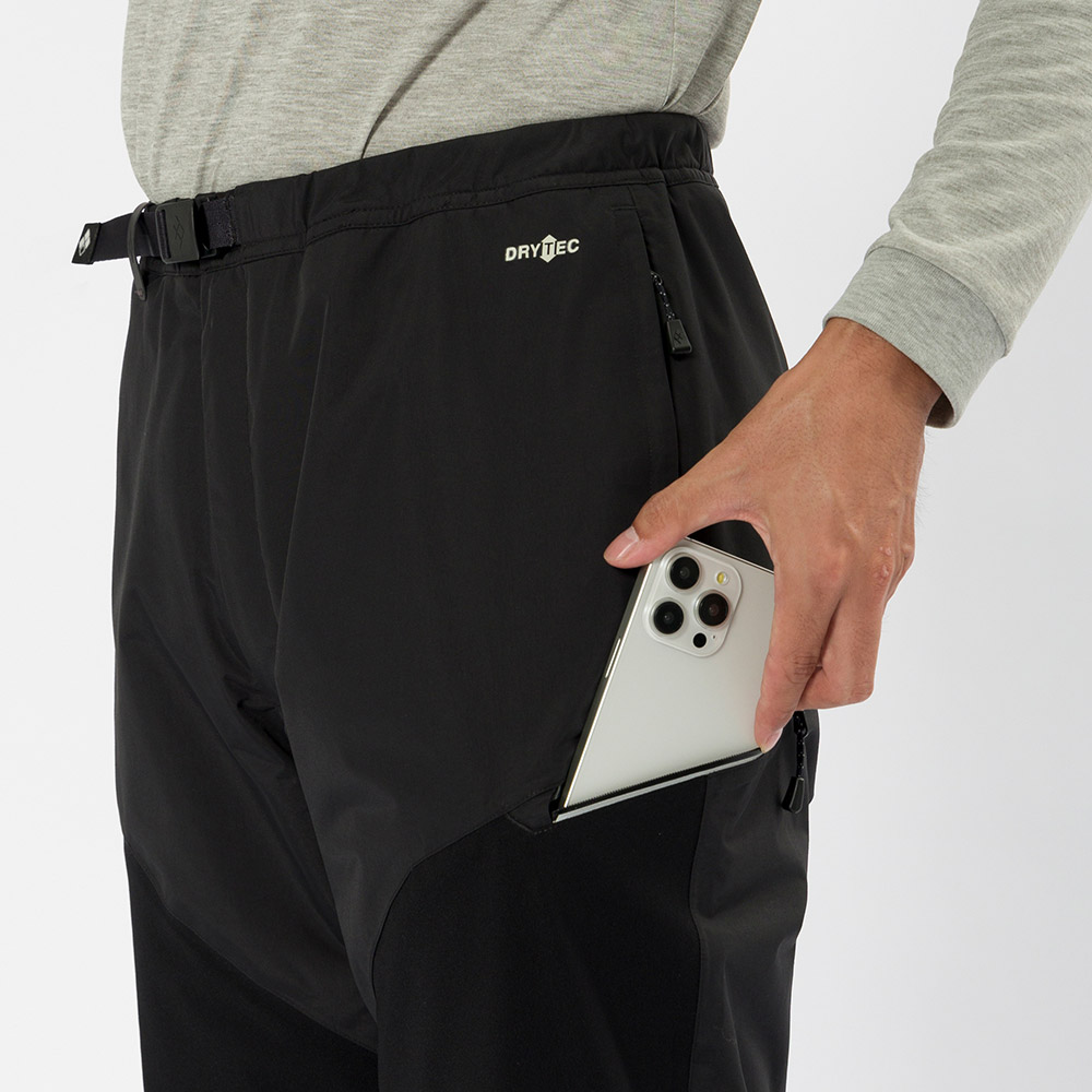 一般的なポリウレタン防水素材の特徴である、防水性を高めると透湿性が低下するという問題を非常に高いレベルで解決したオリジナル素材。雨の粒子を防ぎながら、汗などの水蒸気をスムーズに放出させます。