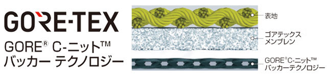 GORE C-ニットバッカーテクノロジーは、ゴアテックスメンブレンの裏地に、軽量性と耐久性を両立した、極めて薄いニット素材を使用した新しいテクノロジーです。透湿性が向上したほか、耐久性を損なわずに大幅な軽量化を実現。極めてしなやかで、着用しやすい質感を備え、従来のレインウエアにない着心地の良さを備えています。生地表面には耐久はっ水加工を施しています。