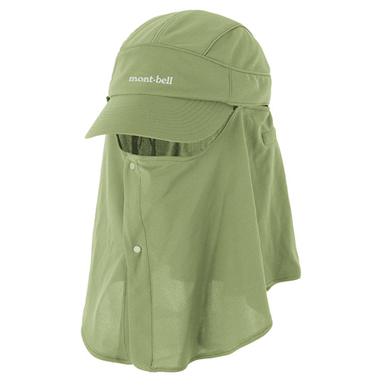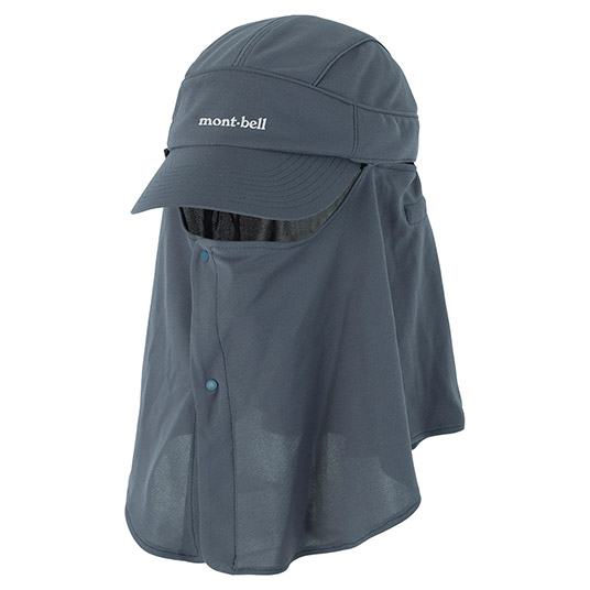 顔から首筋にかけてすっぽりと覆える取り外し可能なシェード付きのキャップです。高い紫外線カット効果を備えたウイックロン®クールを使用。生地には消臭機能を備えています。シェードは後頭部に設けたコードでフィット感を調節することができます。