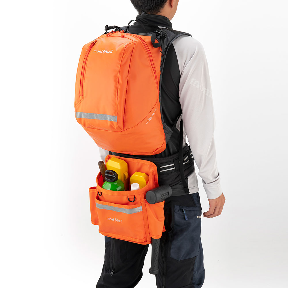 3つの気室を備え、林業機械用の工具や燃料ボトルなどを効率よく収納できる視認性の高い配色のバックパックです。耐油性に優れるターポリンの生地を使用しています。バックパネルは木くずが入り込みにくい仕様で、ショルダーハーネスは肉抜きがされており通気性に優れています。チェストストラップのバックルはホイッスル付き。作業の妨げにならない細身で、下部の厚みと丈を抑えたシルエットにより、別売の「ロガー ツールベルト」・「ロガー ツールバッグ」・「ロガー フラップ ツールバッグ」と併用した際にも干渉しにくくなっています。