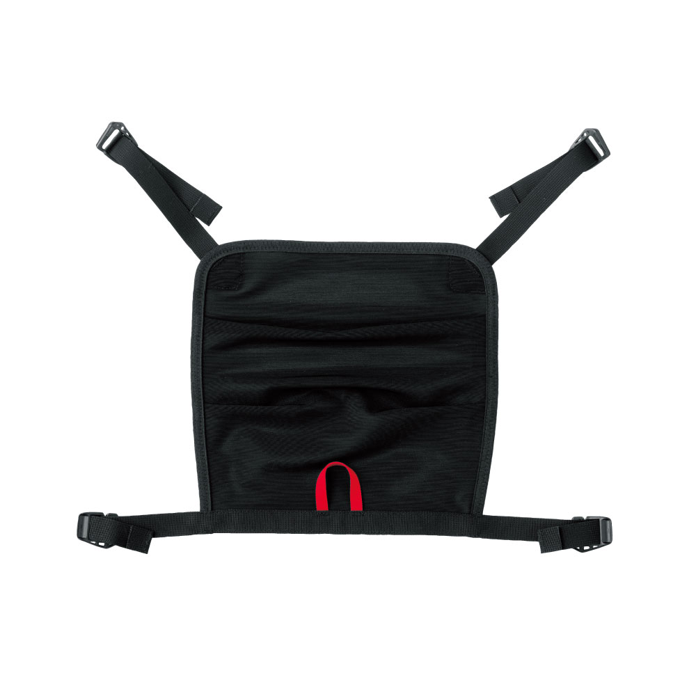 バックパックにヘルメットやウェアなどを外付けするためのホルダーです。ストレッチ素材を使用しているので、さまざまな大きさのヘルメットやウエアを収納可能です。