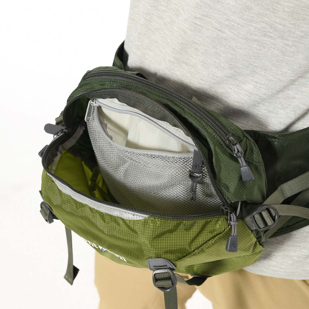 ハイキングやウォーキングにぴったりな、軽量でスポーティーなウエストバッグです。サイドコンプレッション・ベルトをしっかりと引き寄せればパックが揺れず、高い安定感を発揮します。小物を機能的に収納できる便利なポケットやウインドブレーカーなどを挟んで固定できるストラップを備えるなど、収納機能も充実しています。内ポケットに鍵などを付けるのに便利なキーリーシュが付いています。