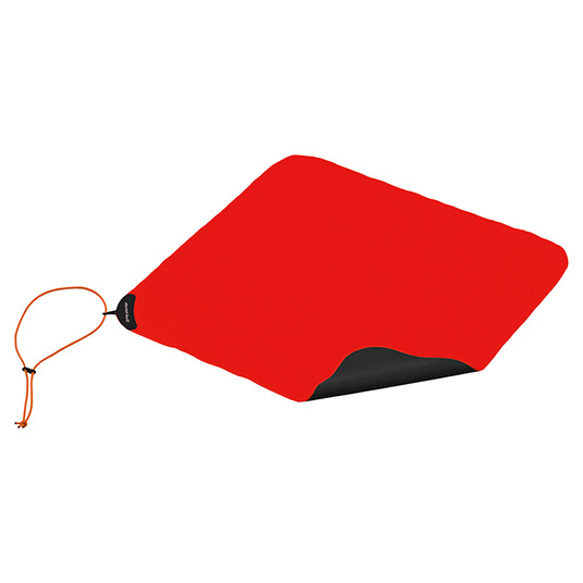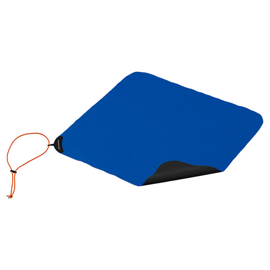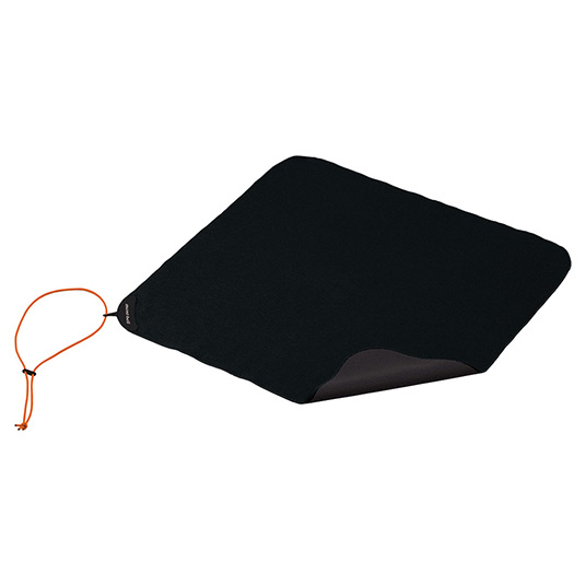 カメラやレンズ、タブレット型端末など、さまざまな形状のものを包むことができるアイテムです。はっ水性を備えた表地とクッション性を備えた裏地で、防水フィルムを挟み込んだ独自の素材を使用。湿った地面で機材を広げる際にも使用できます。標準レンズを付けたフルサイズミラーレスカメラが入るサイズです。