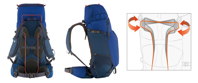 高い強度を備え、超軽量を実現するアルミニウム製ステーを内蔵。背中の曲線に合わせてカーブを調節できるため、高いフィット感を生み出します。歩行時には、ステーが上体の動きに追随し、高い安定感と快適な背負い心地を実現します。