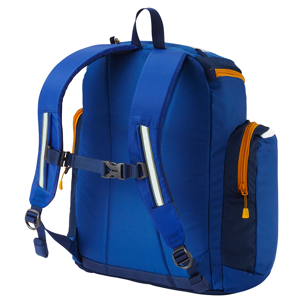 遠足や野外活動などに適した軽量パックです。お子さまでも操作しやすいジッパータイプの開口部は、大きく開いて荷物が出し入れしやすくなっています。2つの大きなポケットは水筒や筆記用具を収納するのに最適です。