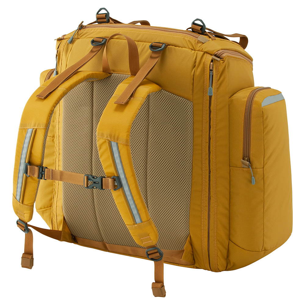ジッパーの開閉により45Lから60Lへ容量を変えられるバックパックです。子どもにも操作しやすいジッパータイプの開口部は大きく開き、荷物の出し入れがしやすくなっています。子どもの使いやすさや安全面にも配慮した機能を豊富に搭載しています。推奨身長125~165cm。