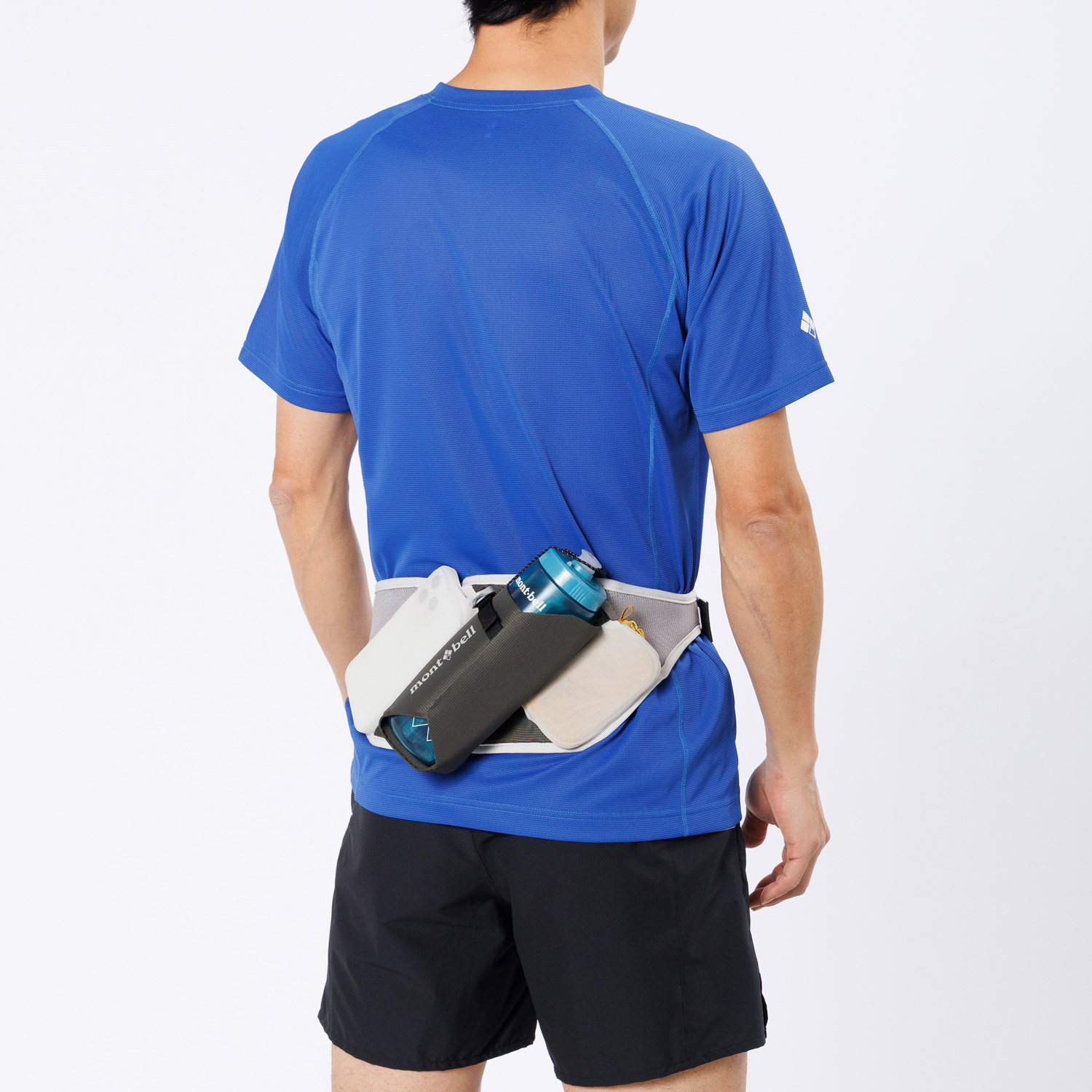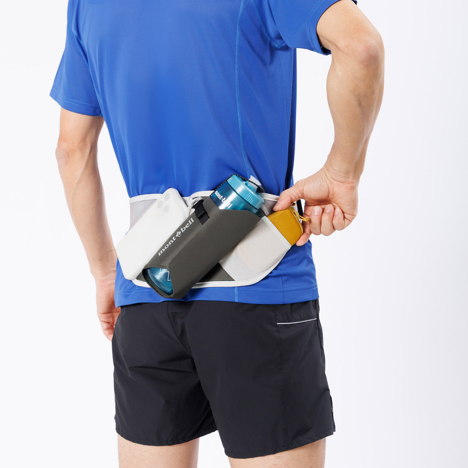 サイクリングやランニングなどのアクティビティ時にスムーズに水分補給を行うために作られたウエスト・ボトルホルダーです。さまざまなボトルに対応するアジャスト機能があるホルダーとなっています。軽量化されたEVAフォームは、腰にフィットし通気性に優れています。スマートフォン用のポケット付き。※ボトルは別売です。※スマートフォン用のポケットを使用する際は本体正面側、メッシュ生地の折り返しをスマートフォンに被せて、ポケットからの不意の飛び出しを防いでください。スマートフォンの形状によっては収納できない場合があります。