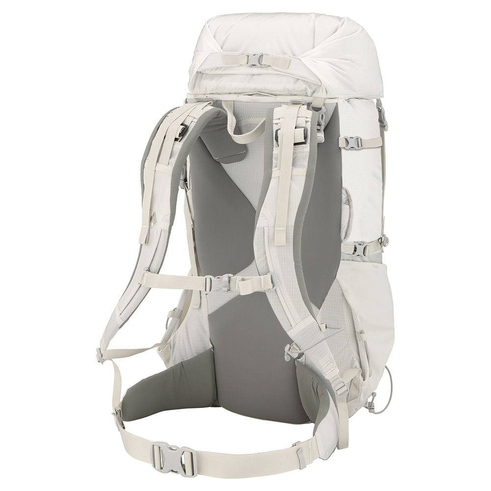 内側にソフト、外側にハードタイプのフォームを内蔵しています。脇・肩・背中へと包み込むように密着することでぶれを防ぎ荷重を分散。大容量を感じさせない絶妙な荷重バランスを実現しています。モデルによってスタビライザーテープでフィット感を調整できます。