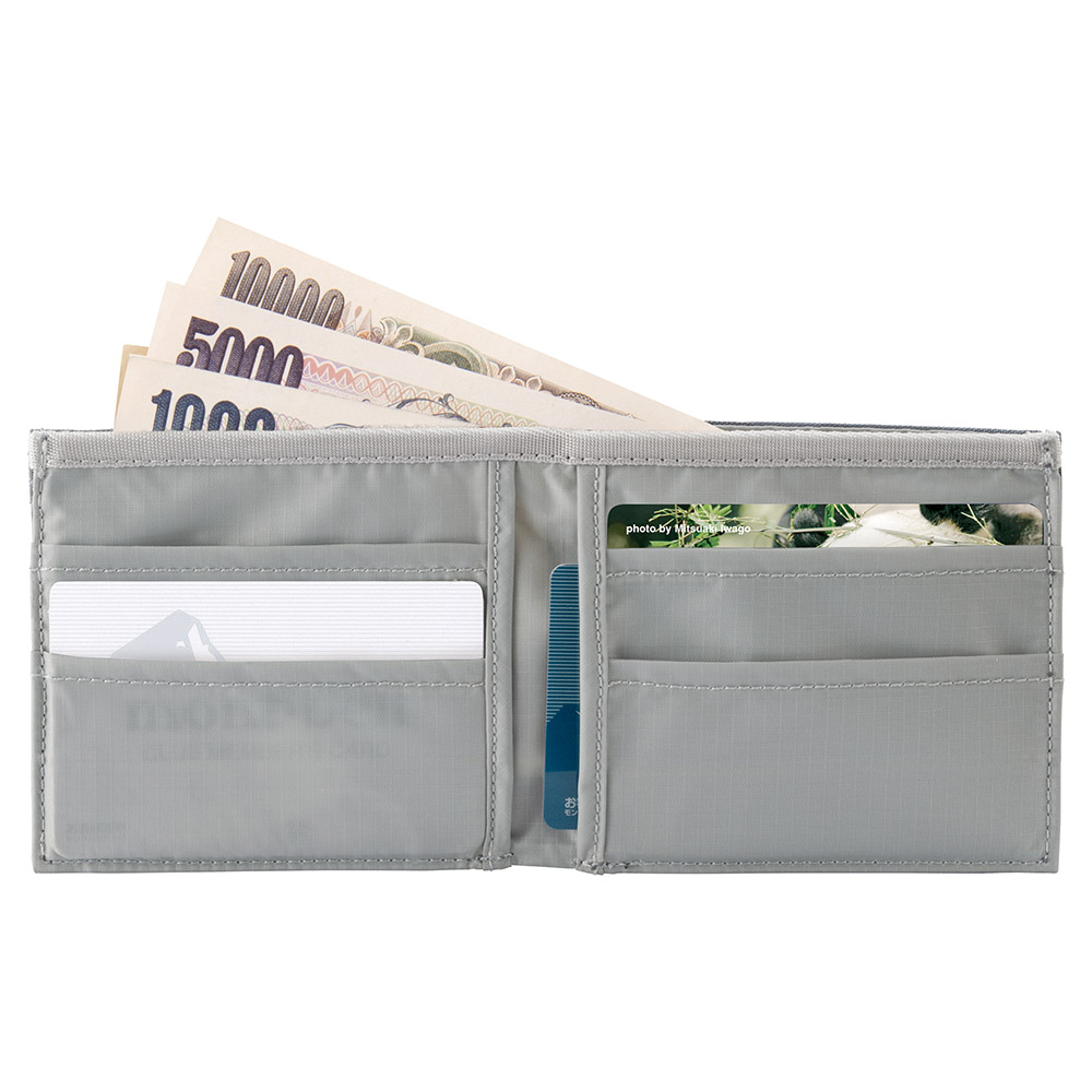 紙幣とコインとカードを入れるシンプルな財布です。座った際などにカードの段差を緩和するための芯材が入っているので、カード類が折れにくい独自の構造です。