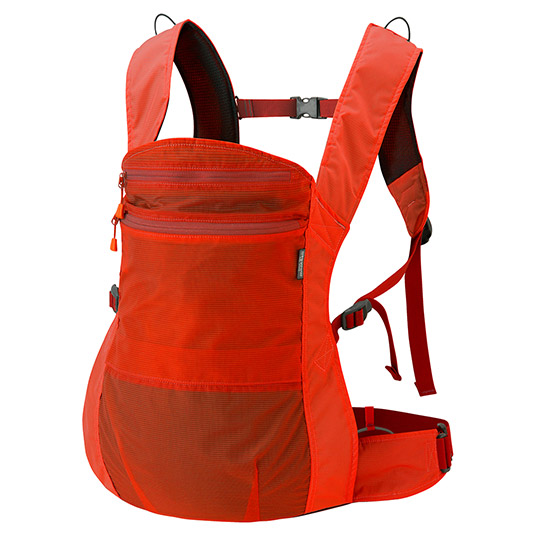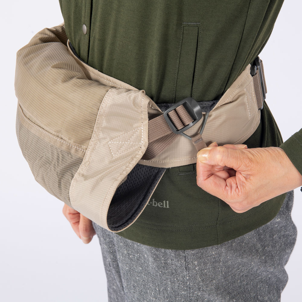 【特長】メッシュフード付き / 腰に巻いたまま簡易的にまとめられるループ付き / チェストサポート / ポケッタブル仕様