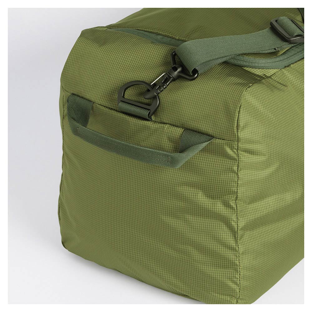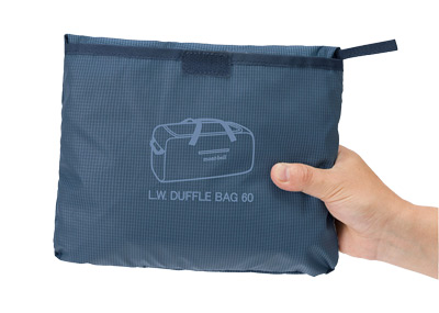 容量60Lの軽量ダッフルバッグです。斜めに取りつけたハンドルにより、収納量に関係なく常に安定した持ちやすさを実現。ショルダーストラップが付属し、バッグ両端にハンドグリップを設置しています。ジッパーはコの字に大きく開閉し、パッキングや物の取り出しがスムーズにできます。内ポケットに収まるポケッタブル仕様です。