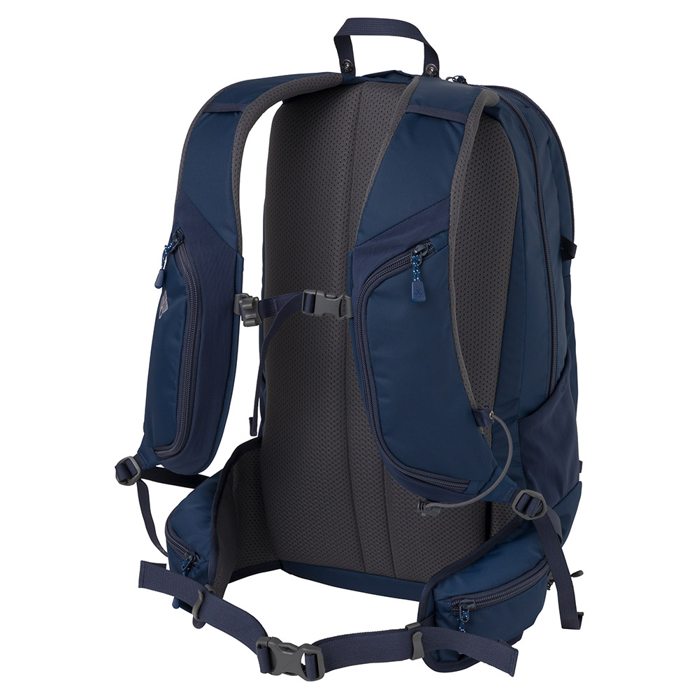 多彩な機能を備えた小型バックパックです。メイン気室とフロント気室の2気室の構成で、行動中にアクセスしやすいショルダーポケットやウエストポケットなどを備えています。