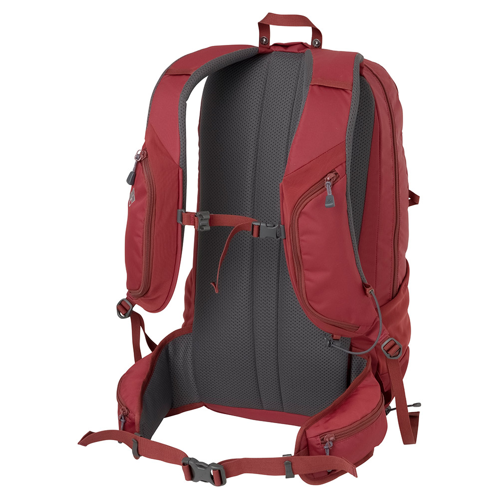 多彩な機能を備えた小型バックパックです。メイン気室とフロント気室の2気室の構成で、行動中にアクセスしやすいショルダーポケットやウエストポケットなどを備えています。