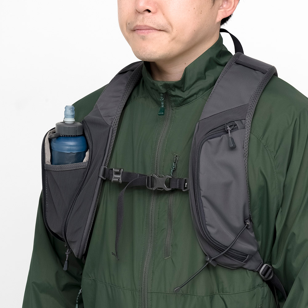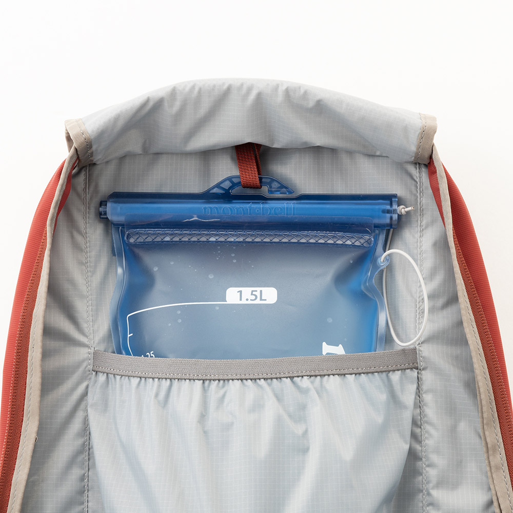 荷物を降ろさずに行動しながら水分補給ができる、チューブで給水するソフトタイプのボトル「トレールウォーターパック」が装着可能です。