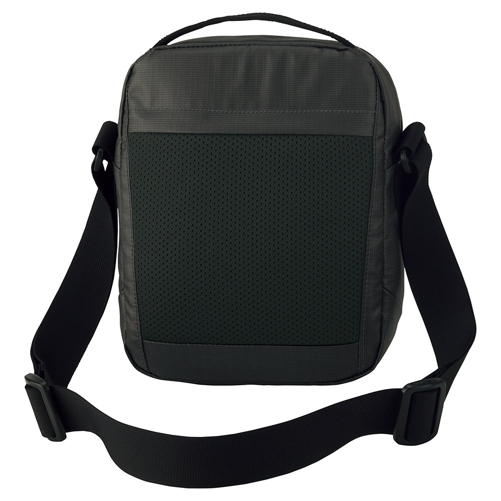 旅行に必要な小物を機能的に収納できる縦型のショルダーバッグです。背面には通気性に優れたメッシュ生地を使用し、パスポートや財布を収納できる隠しポケット付き。