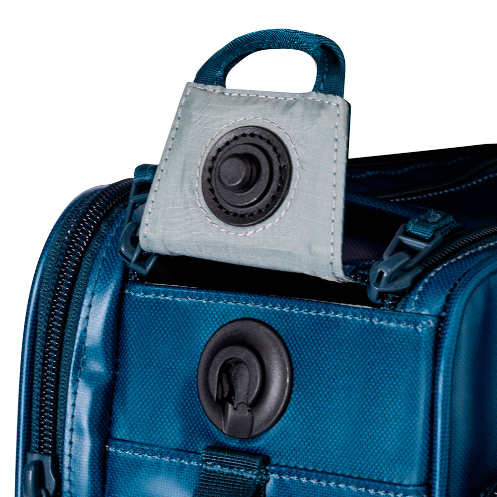 I.ハンドルと左右のタブ(ループ)を使って簡単に開閉できます。物の出し入れがしやすい大開口です。