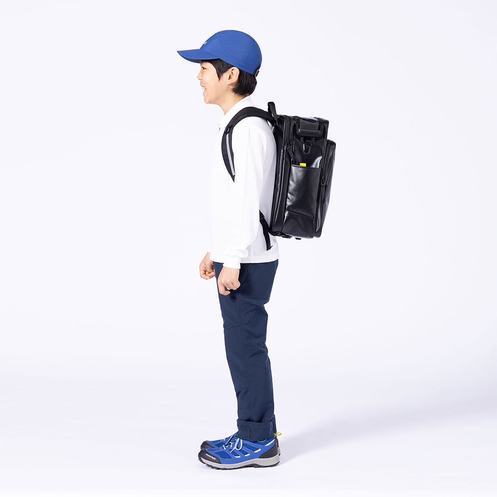 教科書や文房具、タブレットなど、学校で使うさまざまなものをオールインワンで収納できる軽量で高機能な通学用バックパックです。背面と底面はしっかりしたパネル入りで自立し、型くずれを防ぎます。レインカバーと反射テープを備えており、快適・安全な通学をサポートします。水濡れに強い素材で、従来の皮革製ランドセルに比べて非常に軽量です。