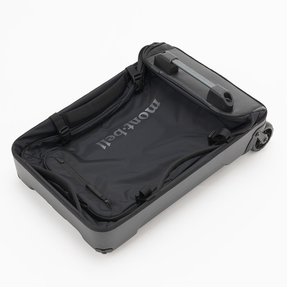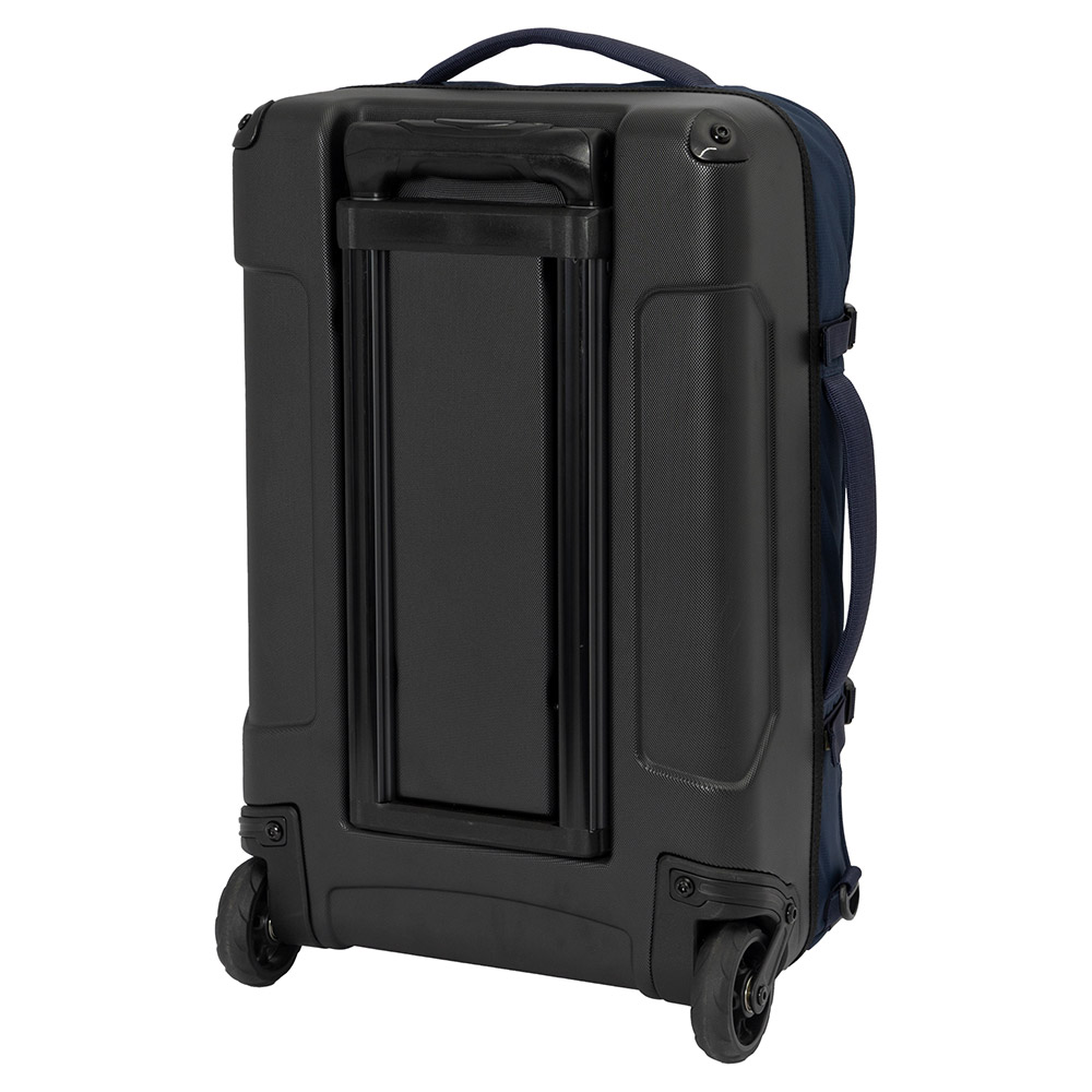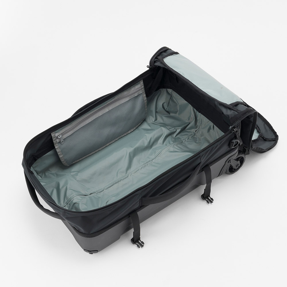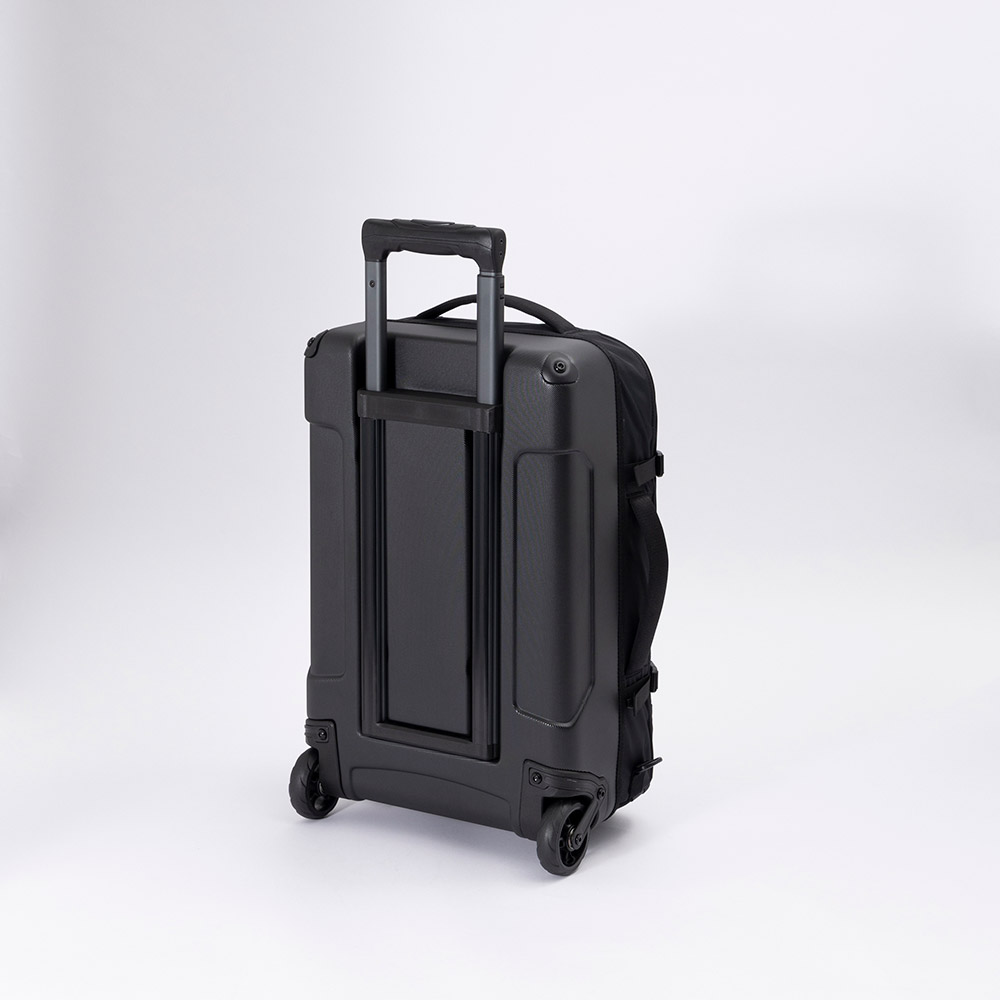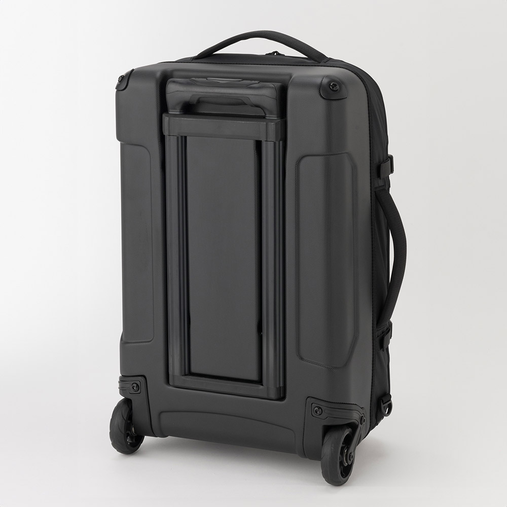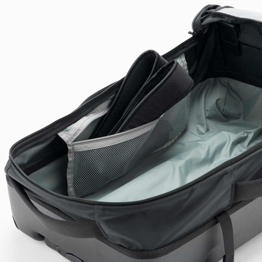 軽量ながら高い強度を備え、荷物が多い時にも安定して引くことができる、2輪のキャスター付きトラベルバッグです。ハンドル、キャスターと一体になった、剛性の高いバックパネルに、軽量で耐久性に優れた生地を組み合わせた構造。使用しない時は厚みを薄くし、コンパクトに折り畳むことができます。別売りのウィーリーバッグ ショルダーハーネスを取り付けて背負うこともできます。
