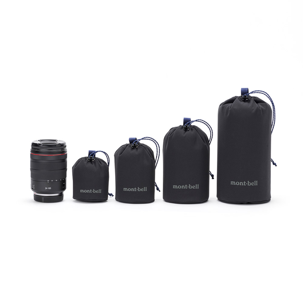 ホコリや小さなゴミが付きにくい、はっ水性を備えたきんちゃく型のレンズポーチです。生地は防水フィルムを挟み込んだクリマバリア®を使用しています。柔らかくストレッチ性があり、大きなフード付きレンズにも対応します。出し入れ口はストッパーつきのドローコードで開閉できます。レンズのサイズに応じて4サイズをそろえました。