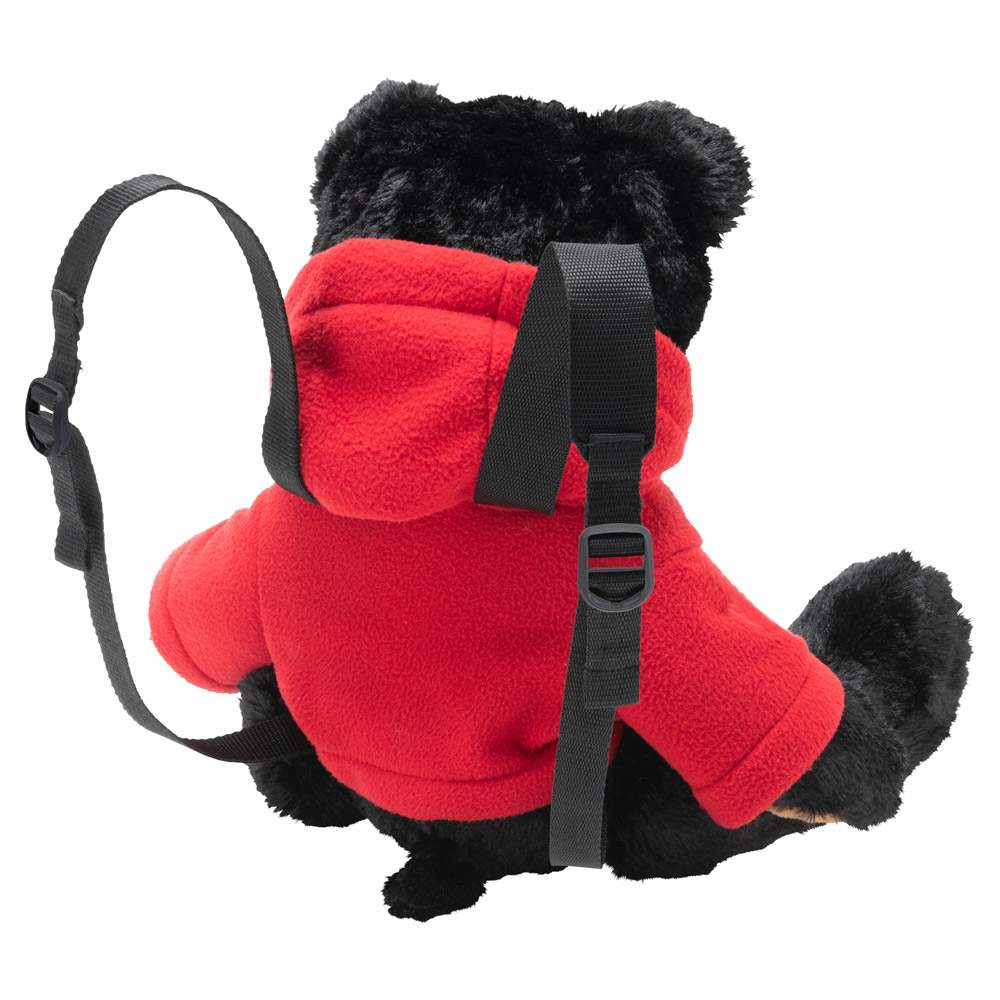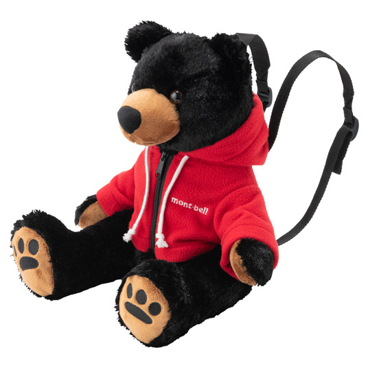 優しい肌触りの、愛らしいモンタベアのぬいぐるみ型リュックです。パーカーの前ジッパーが開く仕様で、300mL程度のペットボトルやお菓子などが入れられます。お子さまへのプレゼントにも適しています。