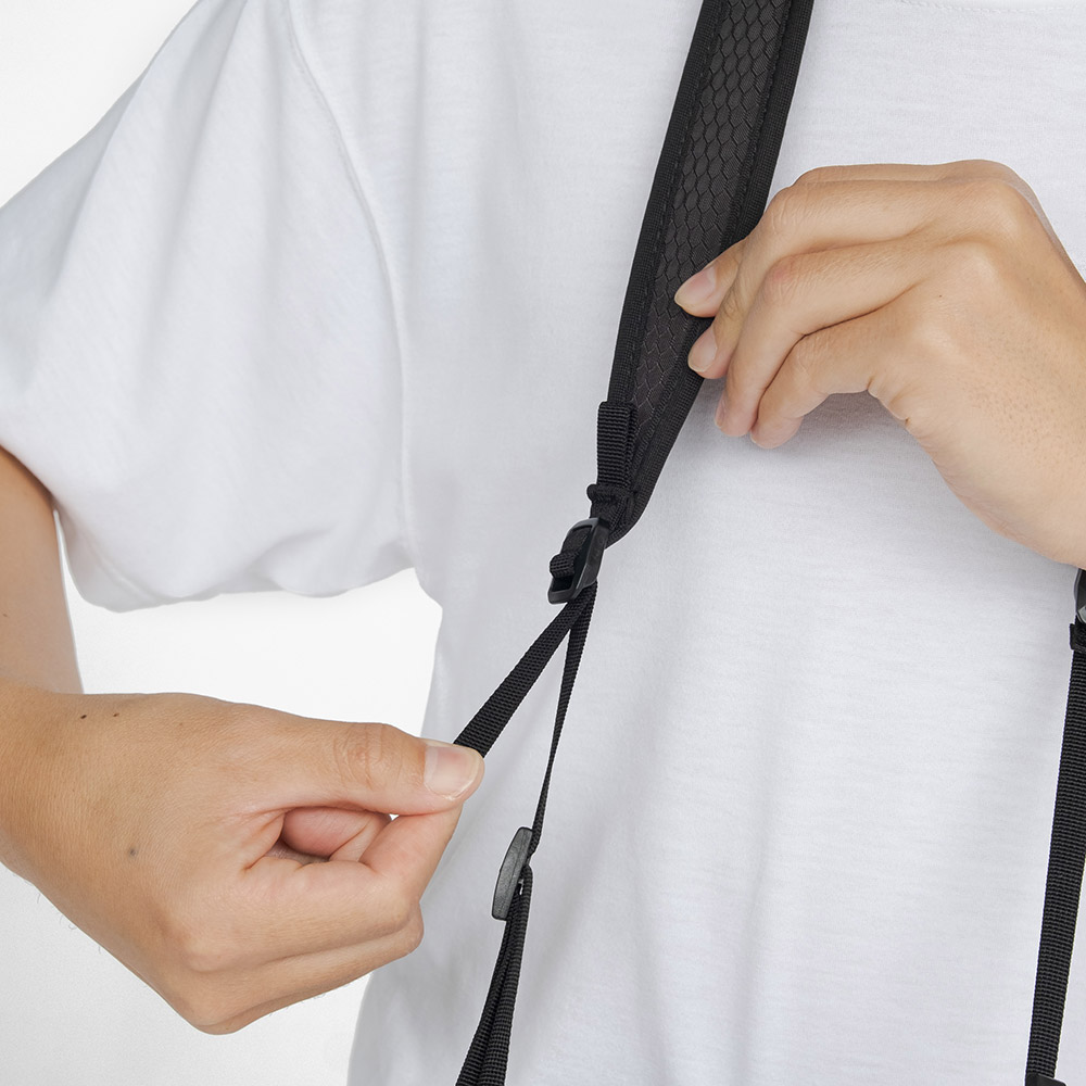 汗をかいてもベタつきにくい通気性に優れたカメラストラップ。軽量で保水しにくいメッシュ生地を使用。#1133383 フォトウォーカーパック30(別売)のショルダーハーネスに取り付け可能。丸洗いできます。