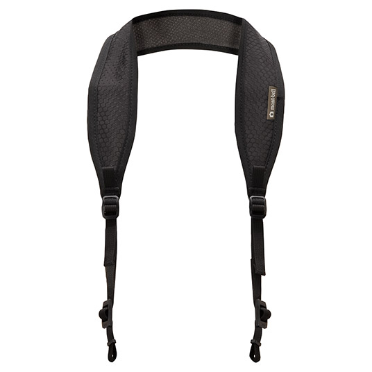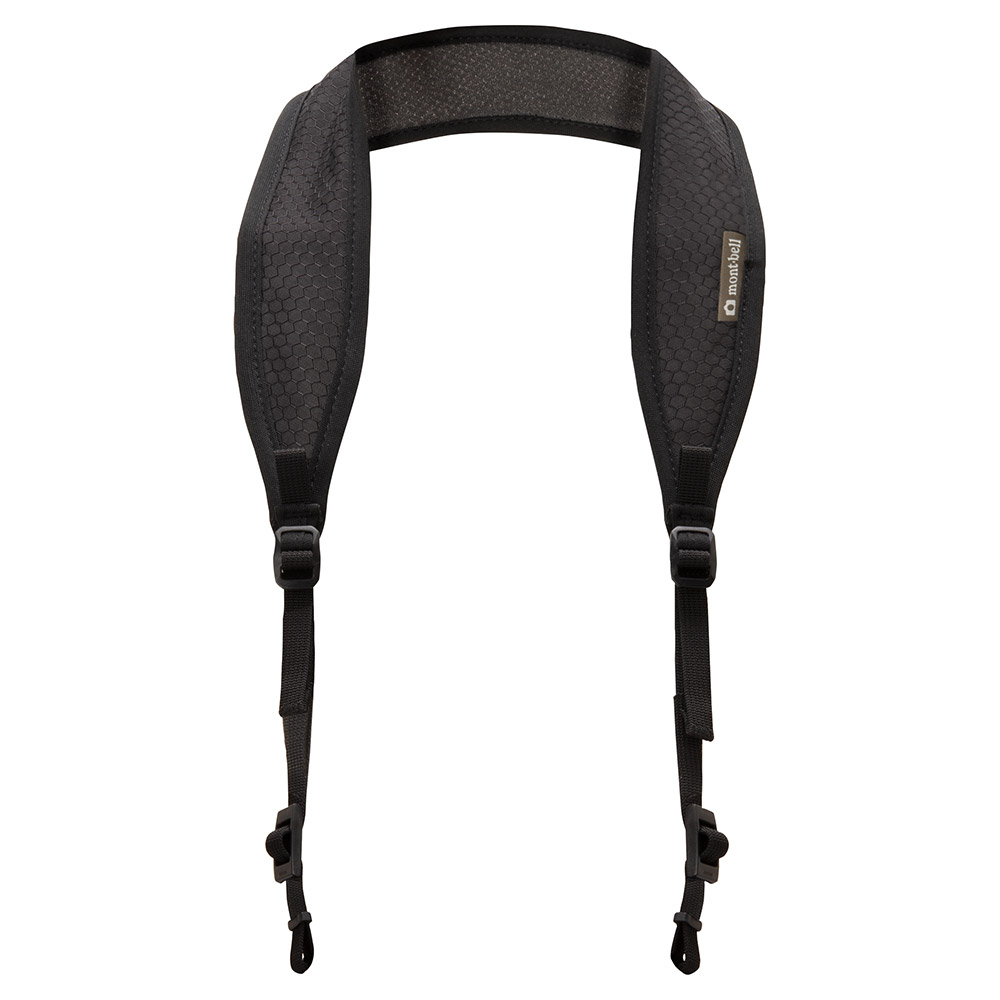 汗をかいてもベタつきにくい通気性に優れたカメラストラップ。軽量で保水しにくいメッシュ生地を使用。重量を分散する幅広設計で、首と肩への負担を軽減します。#1133383 フォトウォーカーパック30(別売)のショルダーハーネスに取り付け可能。丸洗いできます。