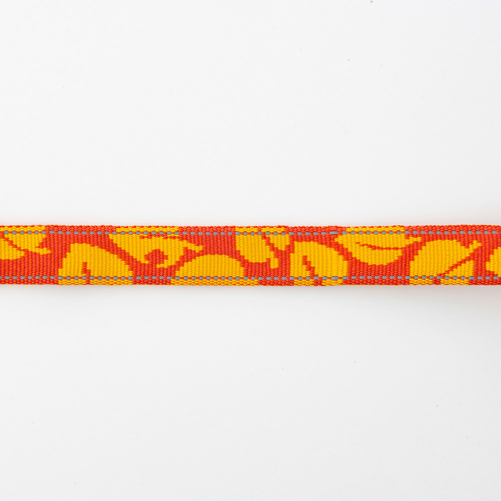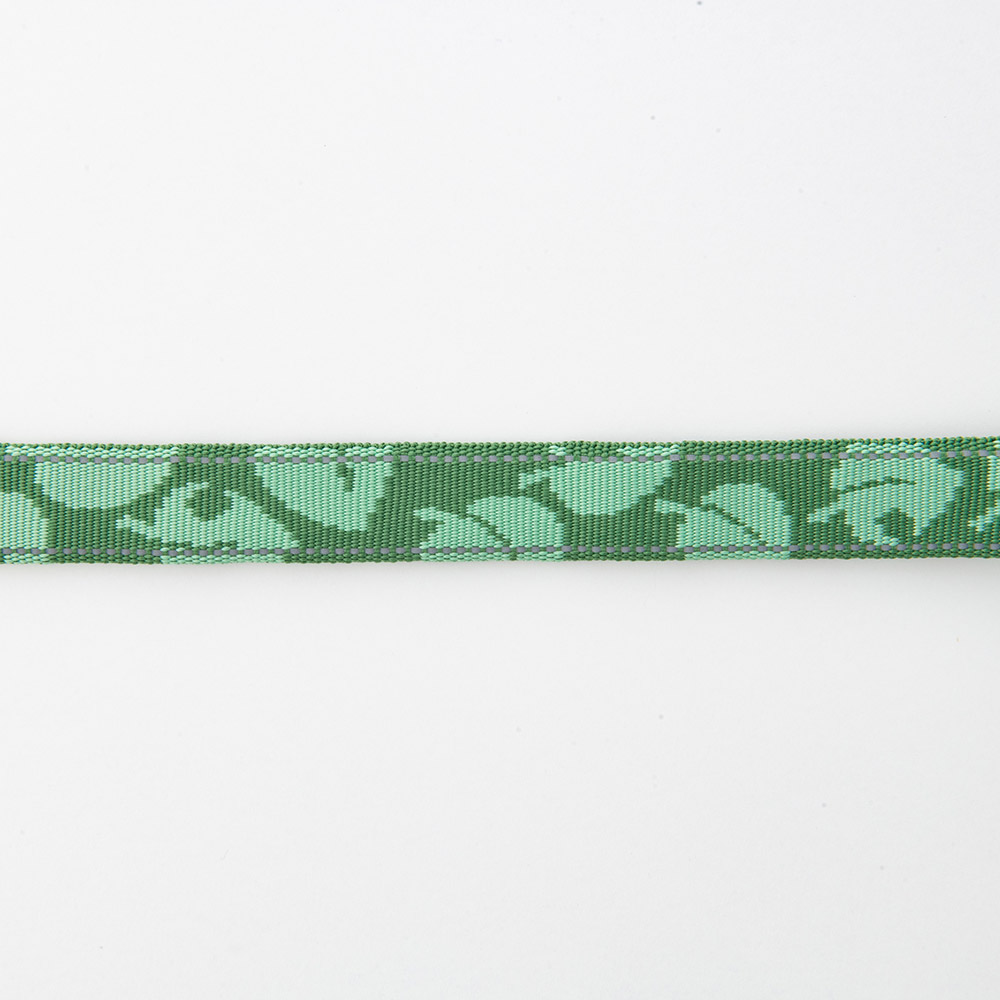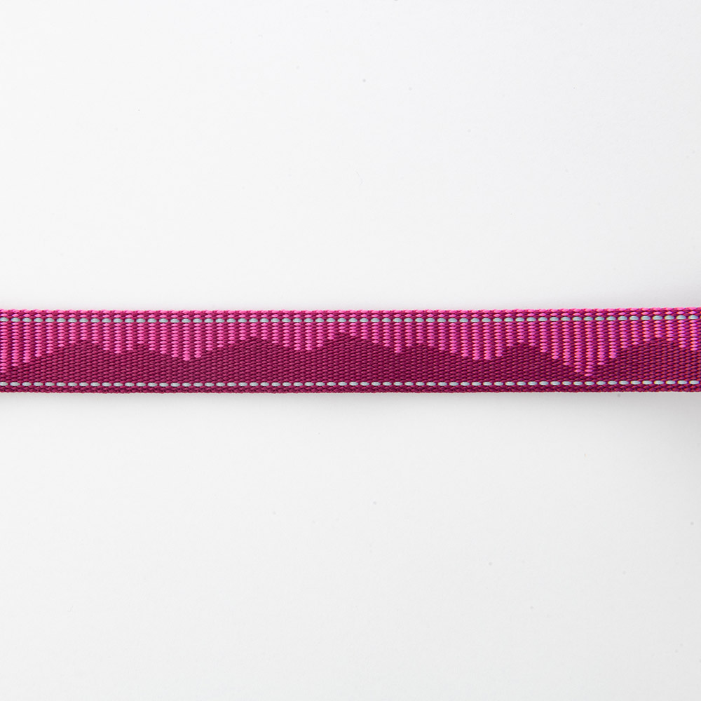 丈夫な20mm幅のテープ素材を使用したシンプルな首輪です。ワンタッチで着脱できるバックルを備え、サイズ調節も容易に行えます。テープ全体に反射素材を使用しているので、夜間の視認性も高くなっています。