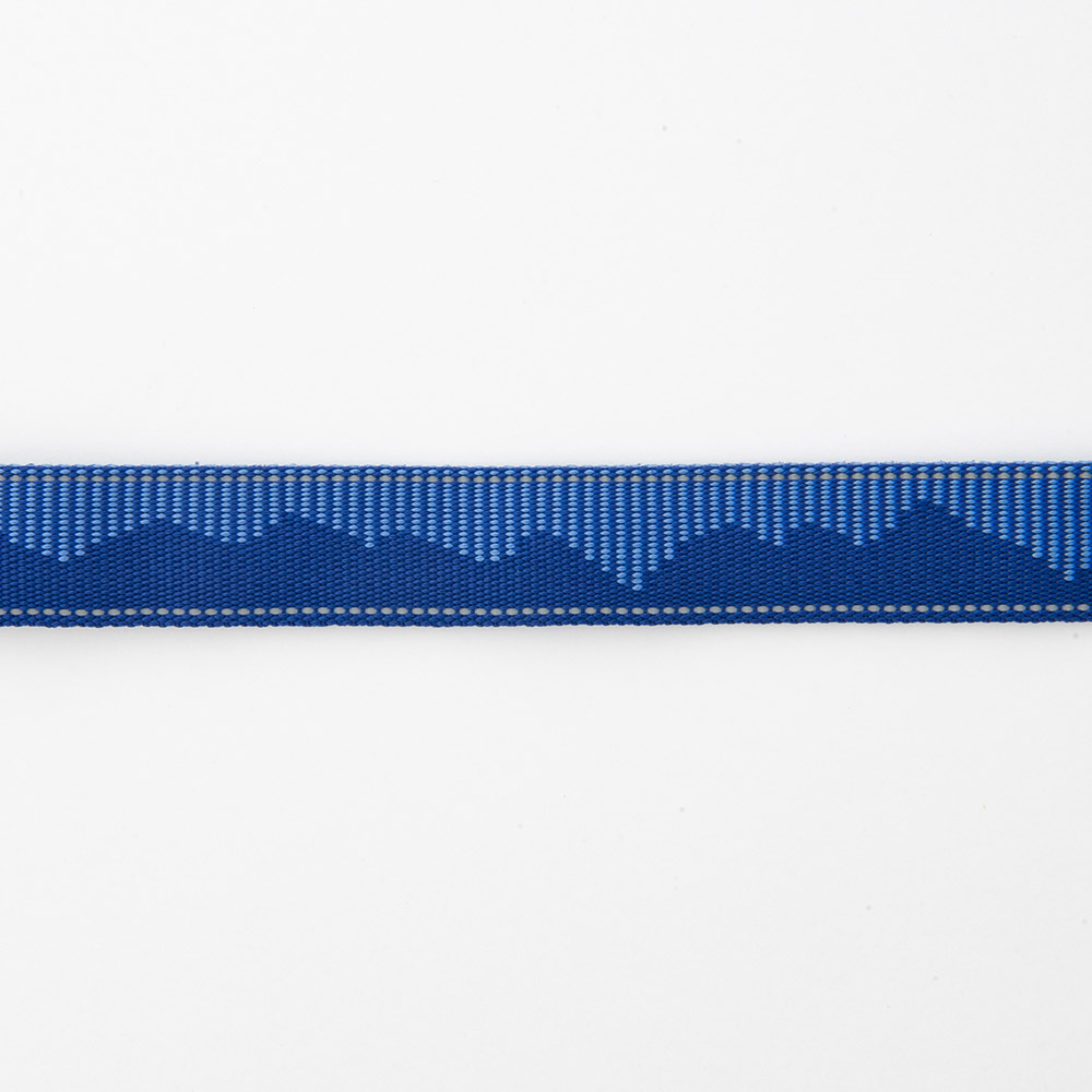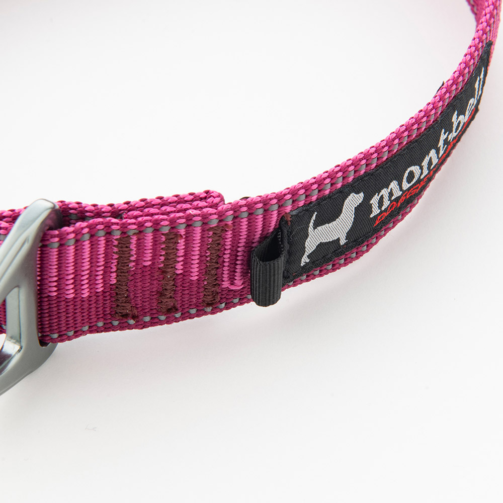 丈夫な25mm幅のテープ素材を使用したシンプルな首輪です。ワンタッチで着脱できるバックルを備え、サイズ調節も容易に行えます。テープ全体に反射素材を使用しているので、夜間の視認性も高くなっています。