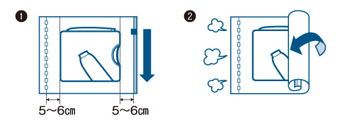 ②中の空気を押し出しながらジッパー側をまるめて圧縮します。