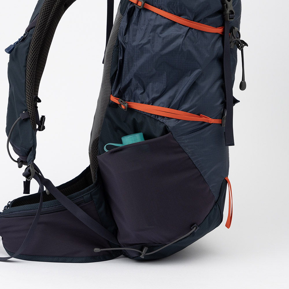 軽量で耐久性に優れ、においも少なく、BPA(ビスフェノールA)を含まない安心素材のクリアボトルです。飲み口は口に密着させやすい細口タイプで、ボトルの中身が一気に口に流れ込むのを防ぐことができるため水分補給がしやすくなっています。本体からキャップを取り外せば氷を入れたり、洗浄したりするのに便利な広口になっています。手の小さな人にも持ちやすく、バックパックのポケットなどに入れやすくなっています。