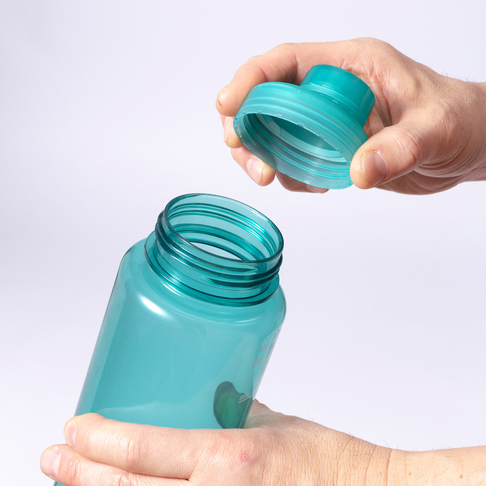軽量で耐久性に優れ、においも少なく、BPA(ビスフェノールA)を含まない安心素材のクリアボトルです。飲み口は口に密着させやすい細口タイプで、ボトルの中身が一気に口に流れ込むのを防ぐことができるため水分補給がしやすくなっています。本体からキャップを取り外せば氷を入れたり、洗浄したりするのに便利な広口になっています。手の小さな人にも持ちやすく、バックパックのポケットなどに入れやすくなっています。