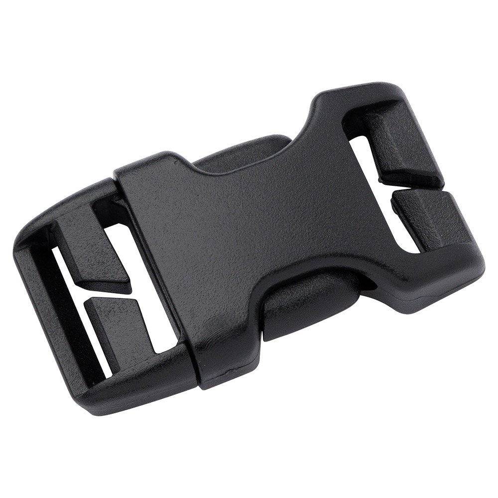 バッグやバックパックのバックルが割れた際に後付けできる応急修理用バックルです。スリットがあるので、末端が閉じたテープに取り付けできる、片引きの仕様です。2個セット。