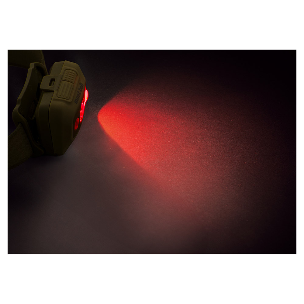 天体観測や動物観察などに適した赤色LEDと、歩行を目的とした高輝度白色LEDを搭載したヘッドランプ。暗闇で作業を行う際には、目に刺激の少ない赤色LEDを使用。白色LEDでは、歩行時や近距離の範囲を照らすのに適した「ワイドモード」、素早い動きやルートファインディング、遠方を照らすのに適した「スポットモード」の2種類の照射モードを状況に応じて、サイドのボタンで切り替えることができます。誤作動を防ぐダブルクリック点灯。「リチャージャブルパワーバッテリー」(#1134205、別売)を利用した際は、一定時間所定の明るさが維持されるコンスタントモードで使用できます。ニッケル水素充電池、リチウム電池にも対応しています。単4形アルカリ乾電池3本付属。