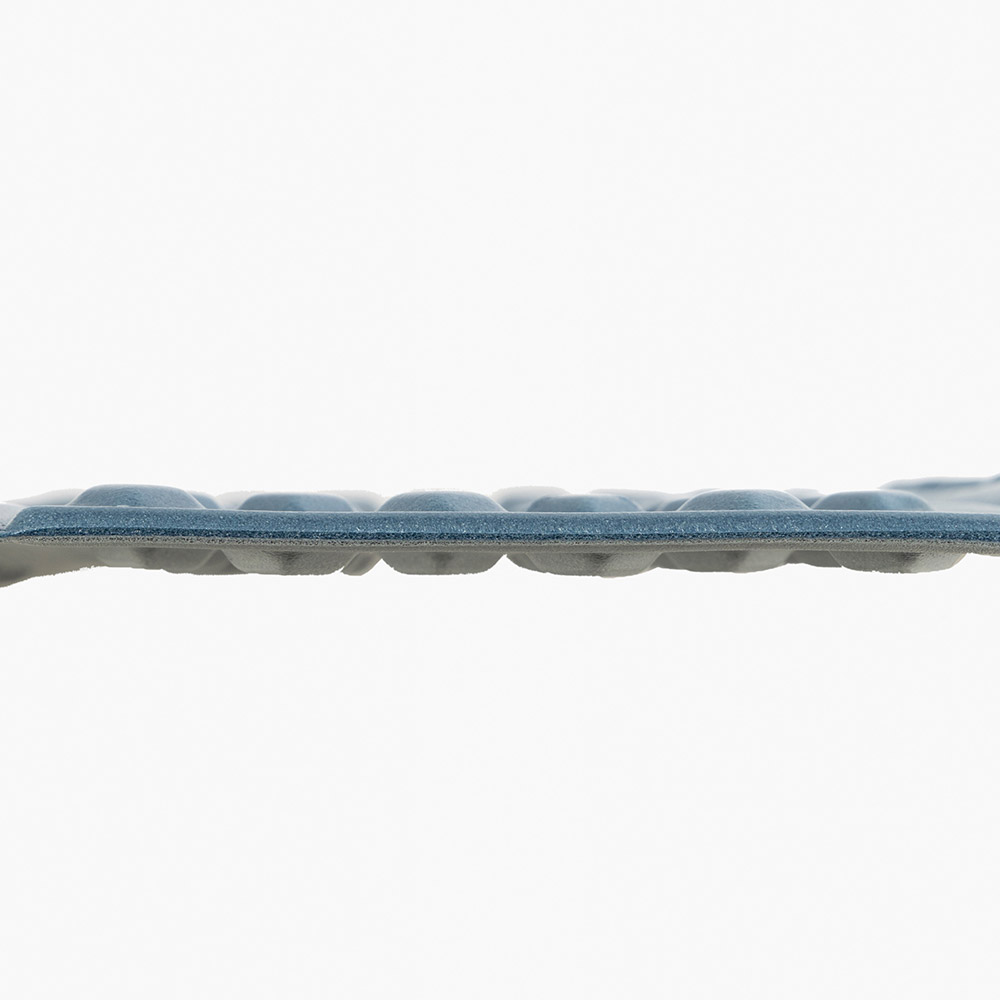 全面に施した凹凸のパターンが、地面からの距離を大きくし、体に伝わる冷気を軽減。保温性の向上に寄与しています。
