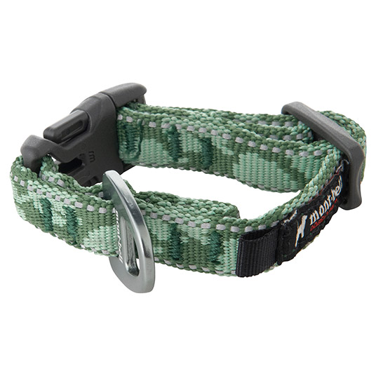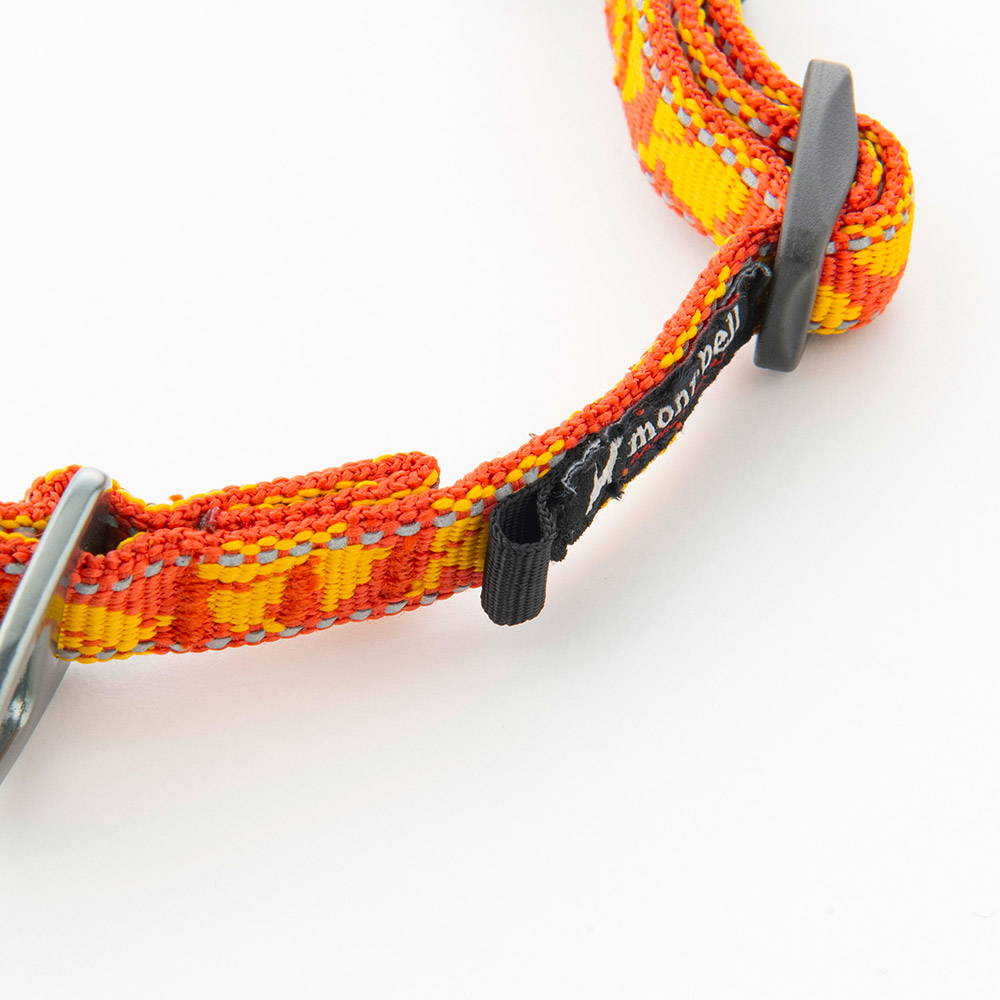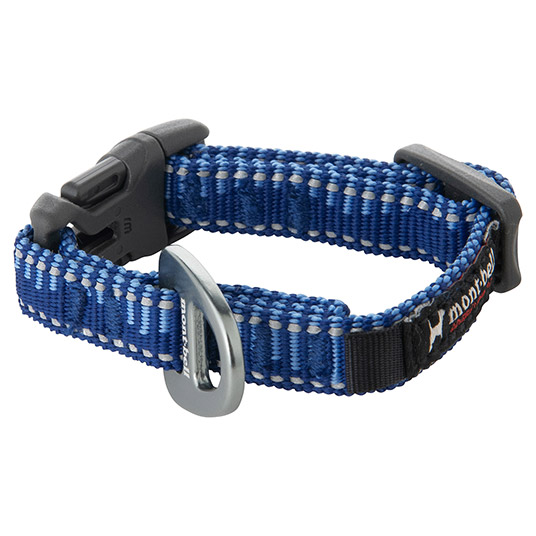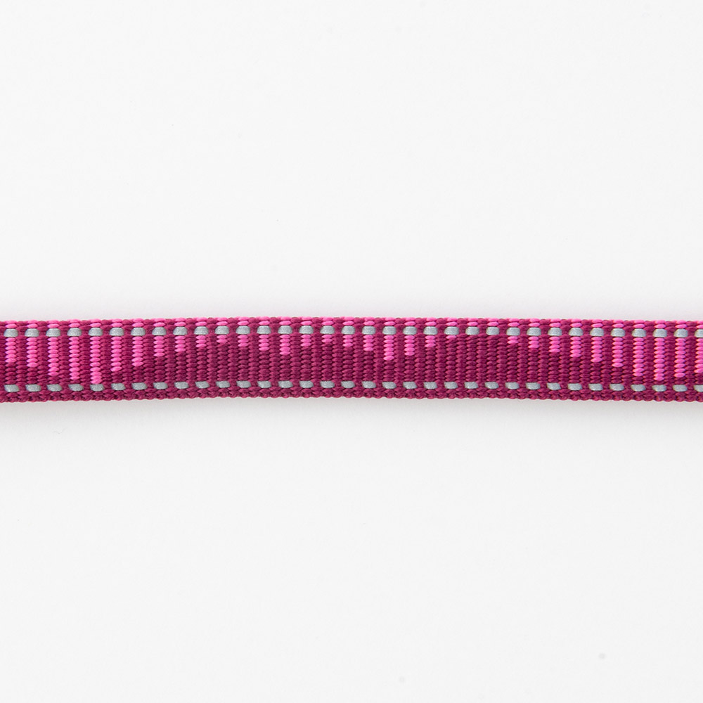丈夫な10mm幅のテープ素材を使用したシンプルな首輪です。ワンタッチで着脱できるバックルを備え、サイズ調節も容易に行えます。テープ全体に反射素材を織り込んでいるので、夜間の視認性も高くなっています。ドッグリードやメッシュドッグハーネスとおそろいの色で使用できます。