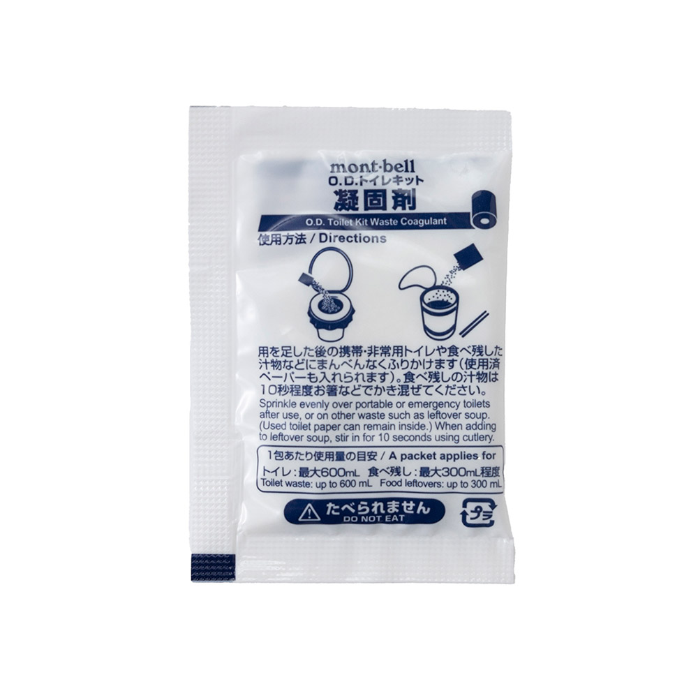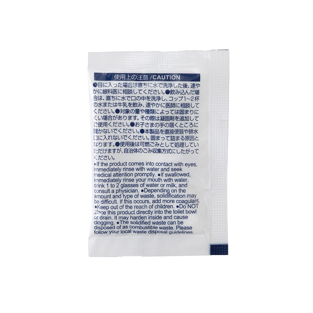 簡易トイレに使用する凝固剤です。尿や便が約1分で凝固します。残った汁物の処理に利用することもできます。10個1セット。