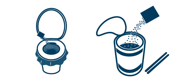凝固可能な量の目安(1包):トイレ1回分(水分量最大600mL)、汁物最大300mL
