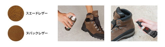 スエードやヌバックの場合、風合いが変わります。目立たないところで試してから、全体に使用するようにしてください。
