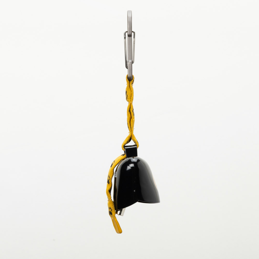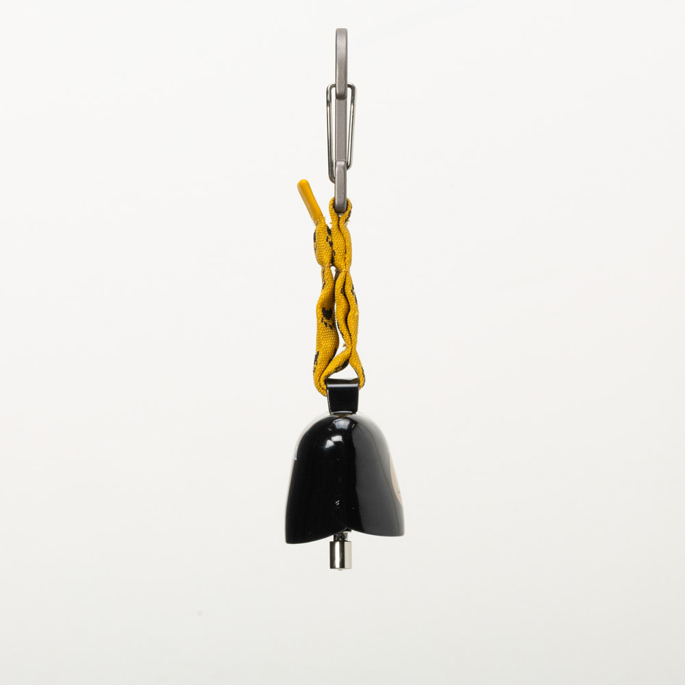 クマやイノシシをはじめとする野生動物に人の存在を知らせるためのアイテムです。カラビナ付きなので、バックパックやベルトループにワンタッチで取り付け可能。カラビナが回転しないデザインです。テープを内蔵したマグネットで消音することができます。モンタベアの顔をプリントしています。